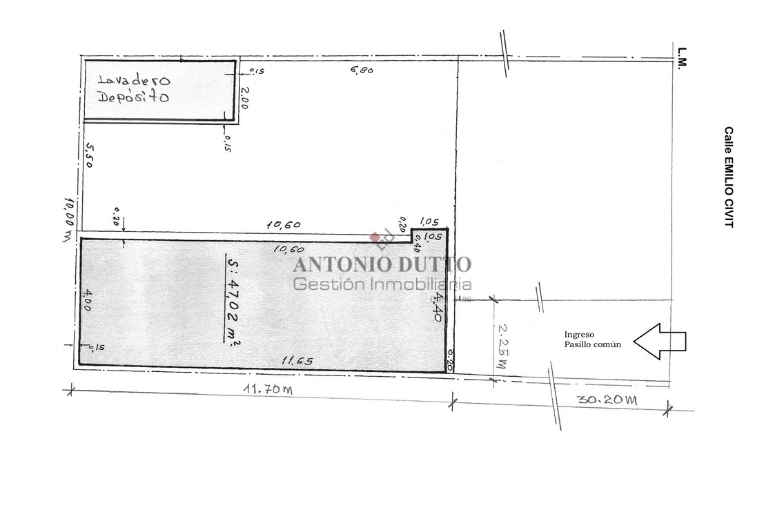 La casa tiene un ingreso desde la calle por un pasillo común de 2,25m de ancho.